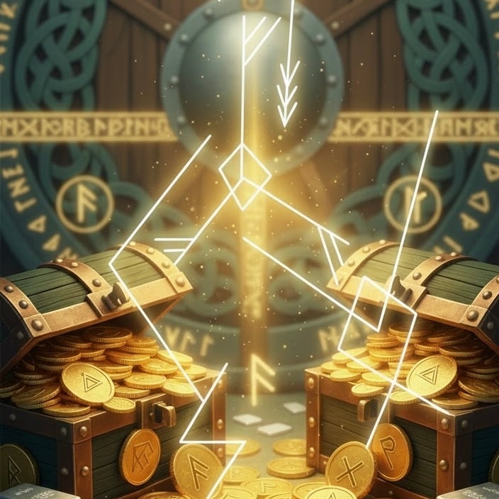 This bindrune can be used to concentrate money to a place. It works by absorbing suitable vibrations and converting them to money in its center. Place it inside your business, home, wallet etc.